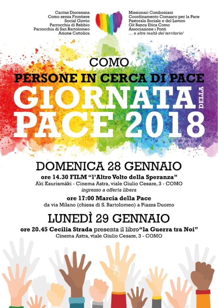 Organizzano le iniziative di domenica 28 e lunedì 29 gennaio all’Astra: Caritas diocesana, Como senza frontiere, Social Giovio, Parrocchia di San Martino di Rebbio, Parrocchia di San Bartolomeo, Azione Cattolica, Missionari Comboniani, Coordinamento comasco per la pace, Pastorale sociale e del lavoro, Git Banca etica Como, associazione I Ponti ed altre realtà del territorio.