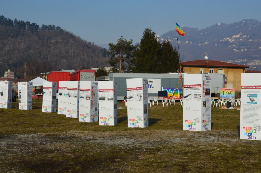 La mostra, composta da 11 totem, non solo raccoglie i contributi di alcune realtà del territorio comasco impegnate per la realizzazione di concrete prospettive di Pace, ma promuove anche la campagna volta alla cancellazione delle spese militari in favore di investimenti per la salute, la cultura, l’istruzione, la giustizia e i diritti.