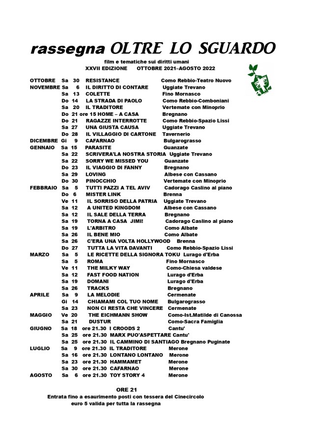 La tessera di Oltre lo sguardo costa 5 euro ed è valida per tutte le proiezioni del ciclo.