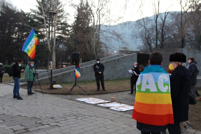 In ordine cronologico si è cominciato con Como, presso il Monumento alla Resistenza Europea. Qui alcune letture hanno messo in evidenza, tra gli altri, i temi del dialogo tra generazioni e del disarmo: alla lettera di don Tonino Bello per «un operaio di una fabbrica di armi» ha fatto seguito la citazione delle premesse inserite nel trattato per la proibizione delle armi nucleari, che proprio in questi giorni “festeggia” il primo anno dall’entrata in vigore. Come è noto, lo stato italiano in ossequio ai diktat militaristi della Nato continua a negare la propria sottoscrizione, ed è sempre più necessario far crescere la pressione popolare perché questa insensata decisione venga modificata. La protesta simbolica di Como ha assunto un particolare significato perché tenuta vicino alla pietra proveniente dalla città di Hiroshima, vittima del primo bombardamento nucleare della storia.