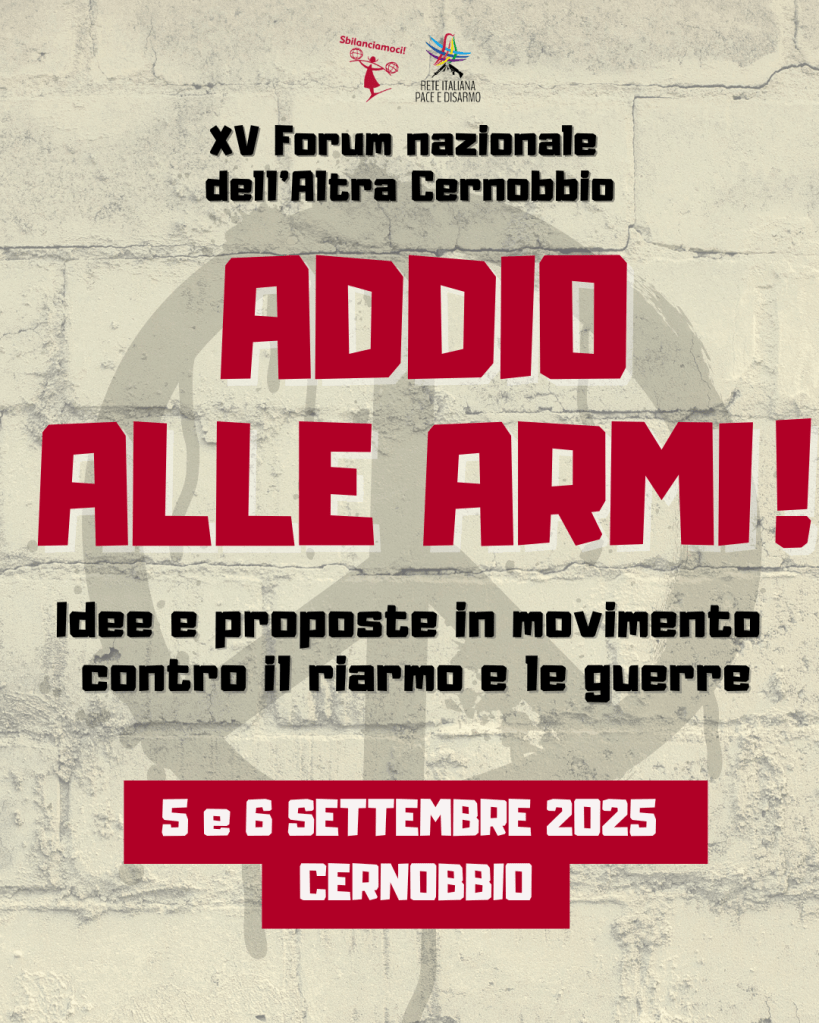 XV Forum nazionale dell’altra Cernobbio 5 e 6 ettembre 2025 Cernobbio. Addio alle armi! Idee e proposte in movimento Contro il riarmo e le guerre. Programma in via di completamento.