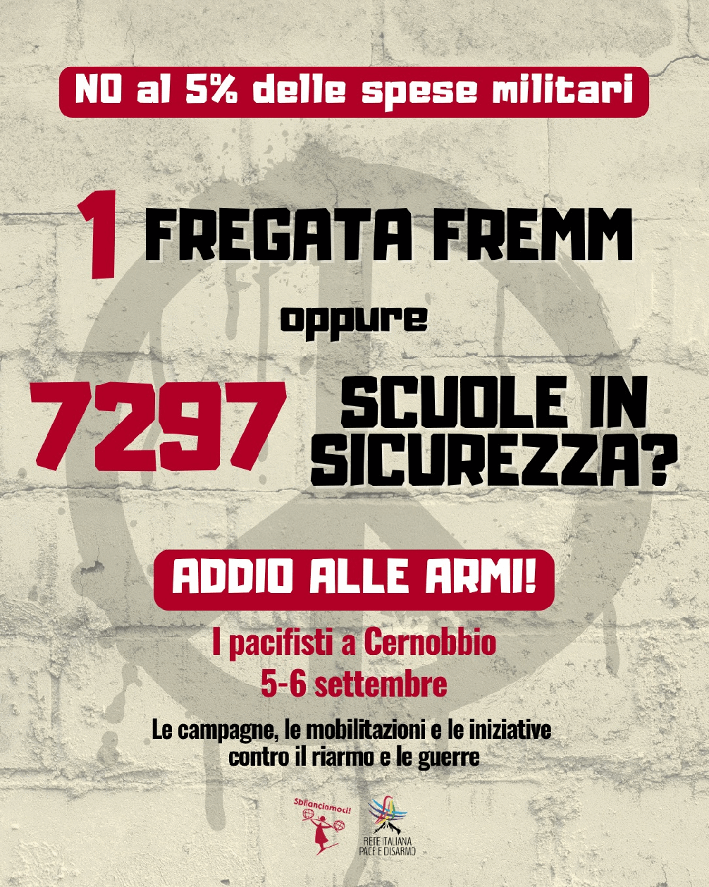 Per questo il Comitato provinciale comasco e i suoi circoli coorganizzano a Cernobbio il Forum Addio alle armi! di Sbilanciamoci e Rete Pace e Disarmo e lo preparano con una serie di eventi a Albate, Cantù e Como che culmineranno con il grande concerto Voci contro la guerra che si svolgerà, con, il patrocinio del Comune, a San Fermo della Battaglia, venerdì 5 settembre dalle 20,30.