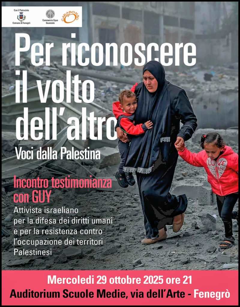 Senza categoria 29 ottobre/ Fenegrò/ Voci dalla Palestina Pubblicato da mattialavezzi9 il 23 ottobre 2025 Condividi: Condividi su X (Si apre in una nuova finestra) X Condividi su Facebook (Si apre in una nuova finestra) Facebook Mi piace Caricamento... Correlati