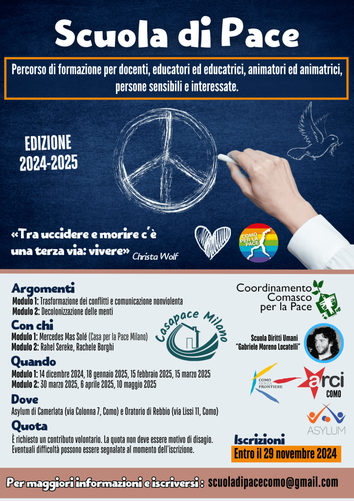 partecipato, riproponiamo nel 2024/2025 la Scuola di Pace, ribadendo i principi che la sottendono.